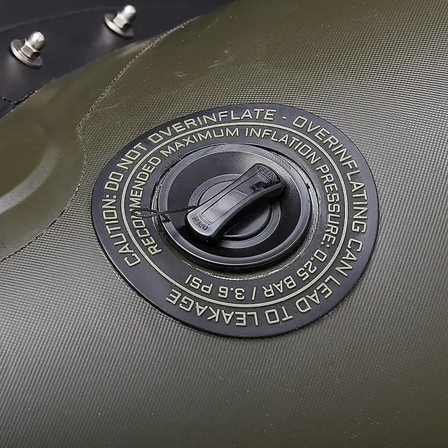 Element Wave Rider 240 har et dobbelt akterspeil for flere alternative former for motorfeste til elektriske båtmotorer (kjøpes separat) og for å gjøre denne 240 cm lange båten ekstra romslig og veldig enkel å klatre både inn og ut av. Gummibåten har en flått karpete olivengrønn farge som passer for både karpefiskere og jegere.
