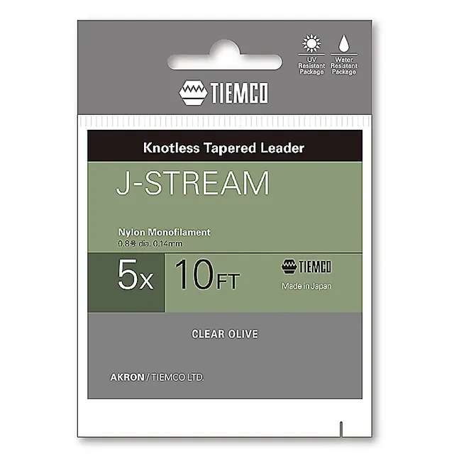 Tiemco J-Stream Leader har litt stivere materiale for bedre kasteegenskaper, økt kontroll og holdbarhet. Den tynnere enden bidrar til bedre flyt.